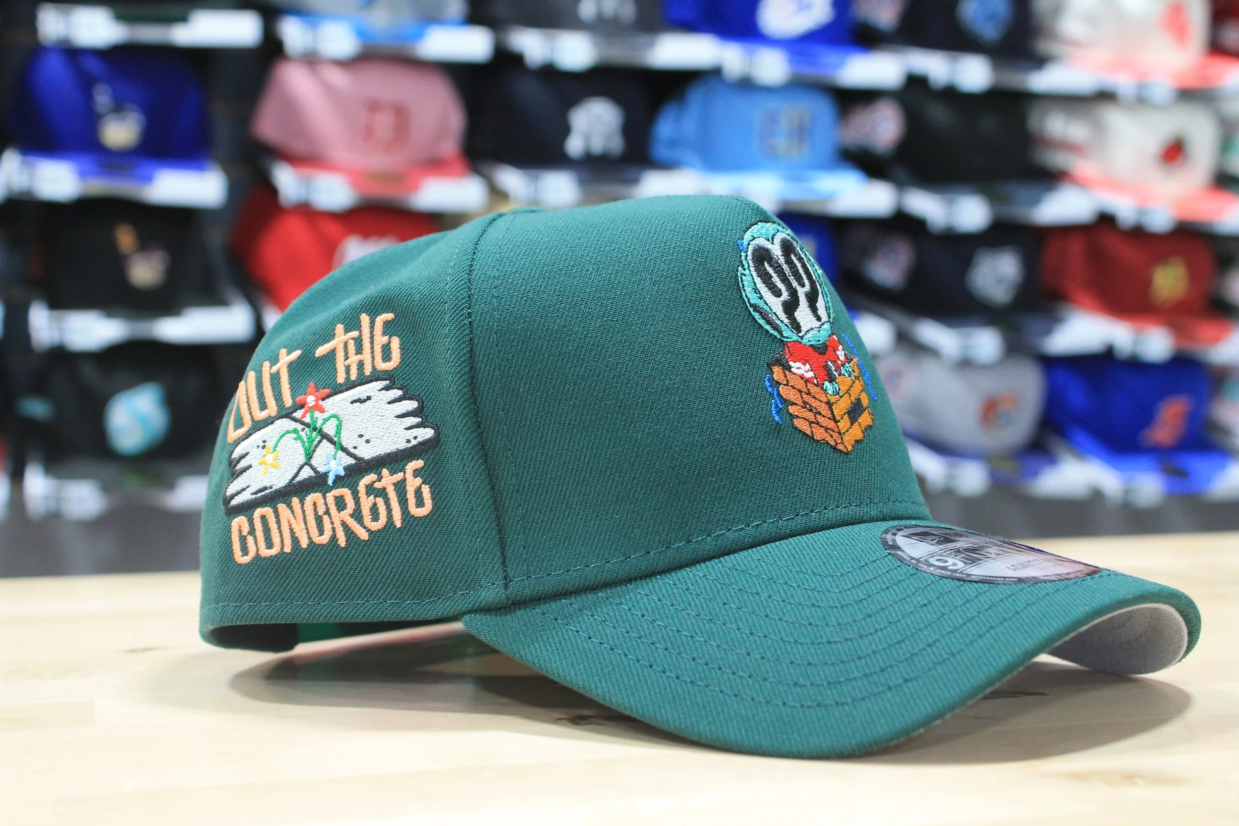 The collaboration aims to reflect and uplift the neighborhood through wearable art. For Gomez, that meant designing hats he and others in Little Village could wear every day. Burdeens gave him full creative freedom, requesting only that a “B” be embroidered on the back of each cap.